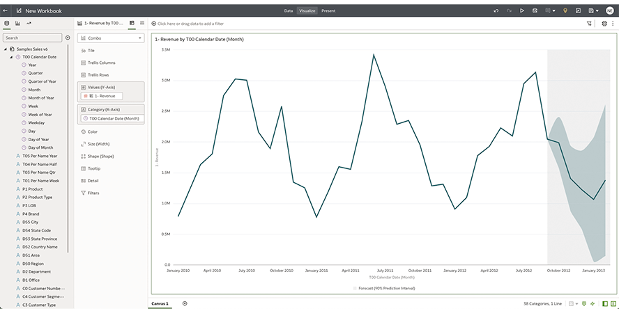 Oracle Analytics embeds AI/ML throughout the platform, catering to users of all skill levels, from clickers to coders. Expand beyond built-in AI/ML capabilities with Oracle Database Machine Learning and OCI AI Services to cover a broader range of use cases.
