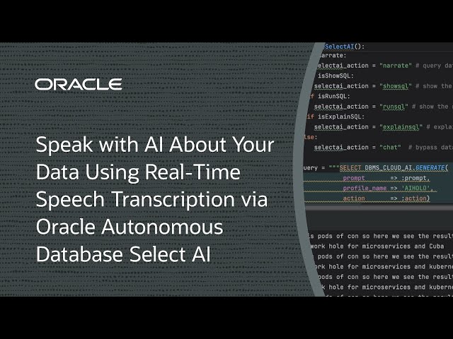 Essa solução combina a linguagem natural em tempo real do Oracle Autonomous Database Select AI com o recurso de processamento SQL (NL2SQL) com IA generativa, permitindo que os usuários interajam com seus dados de forma intuitiva. Essa abordagem permite a comunicação verbal, permitindo que os usuários façam perguntas, façam solicitações e recebam respostas em linguagem natural para acessar novos insights.