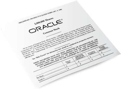 A Oracle se torna uma empresa de capital aberto na bolsa de valores NASDAQ. O símbolo de cotação é ORCL.