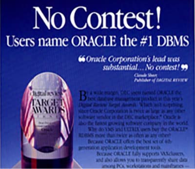 InformationWeek nomeia o Oracle Database um dos produtos mais influentes da década de 1990.