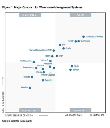 * Gartner, Inc., "Quadrante Mágico em Sistemas de Gestão de Depósitos; Simon Tunstall, Dwight Klappich, Rishabh Narang, Federica Stufano; 2 de maio de 2024.