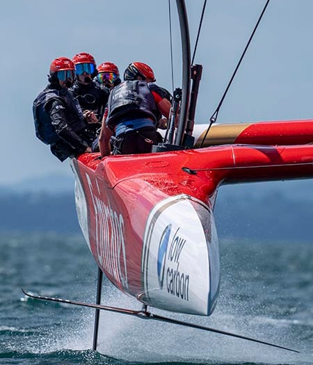 Technology also makes a difference in the design of the foil, including its dimensions and the contour of the curved surfaces. When SailGP first launched, each F50 had an L-shaped foil. They were fast, but engineers determined that a T-shaped design would be even faster.