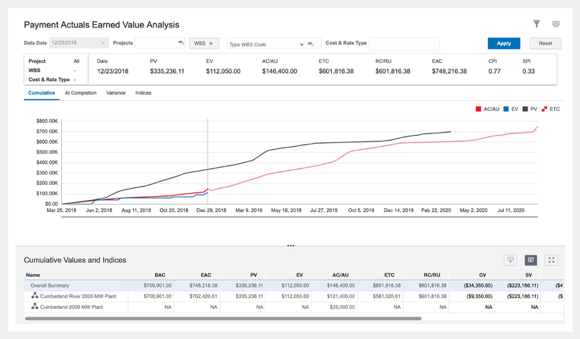 Oracle Construction and Engineering 是一个项目和项目组合管理解决方案,对企业长期面对的挣值管理 (EVM) 痛点有一定的了解(Primavera 的其中一位创始人写了一本关于 EVM 的著作*)。同样重要的是,我们了解其推动更好项目成果的潜力。Oracle EVM 解决方案可统一成本、计划和计划数据,并通过强大的分析功能扩展洞察力。我们的解决方案为 EVM 流程带来了全新的洞察力和效率。