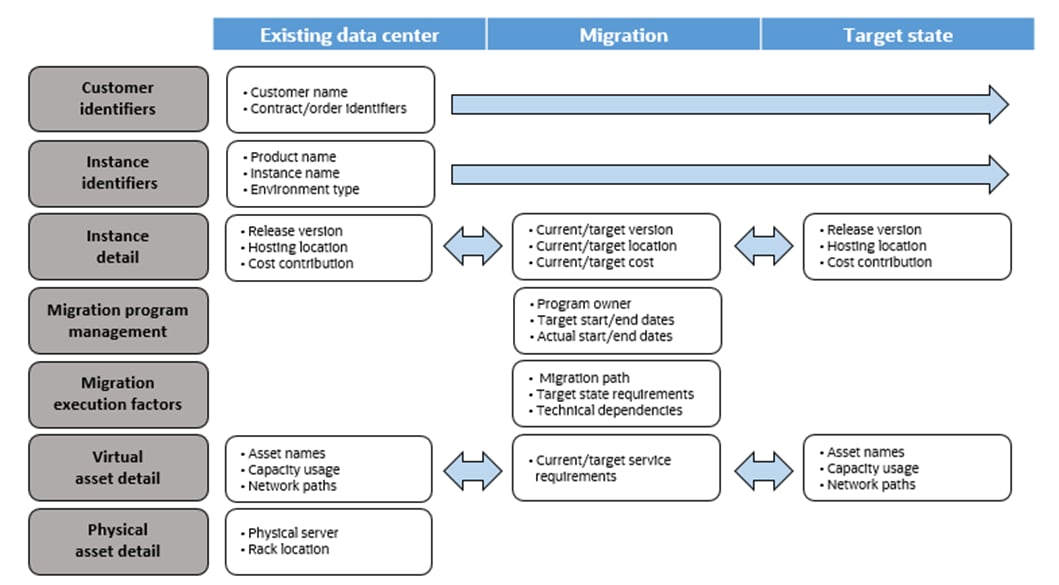 管理迁移清单本身是一个跨职能的项目,必须平衡对详细数据的需求和收集数据的工作量。它还包括确定依赖项、限制和资源的要素,例如精细的技术规范、架构方法、客户需求和数据传输路径,这些要素将影响时间和速度。如果信息太少,清单就没什么用处。但若信息太多,又会带来维护负担,数据可能会很快过时,无法使用。