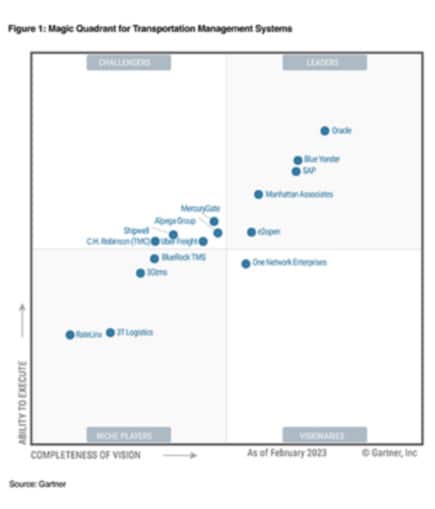 ** Gartner, „Magic Quadrant for Transportation Management Systems“, Brock Johns, et al. 27. März 2024.