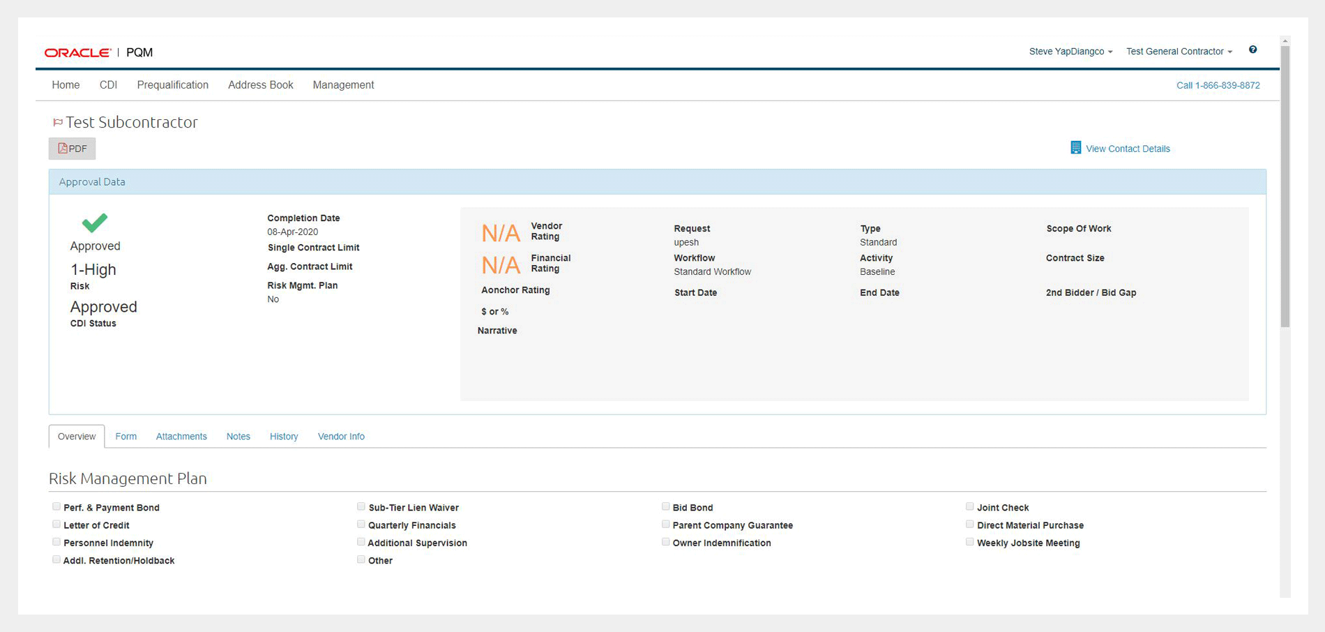 Oracle Textura Pre-Qualification Management Cloud Service automatisiert den Vorqualifizierungsprozess für Subunternehmer und ermöglicht Generalunternehmern, Risiken in Vorqualifizierungsprogrammen für Subunternehmer effizient und effektiv zu verwalten.