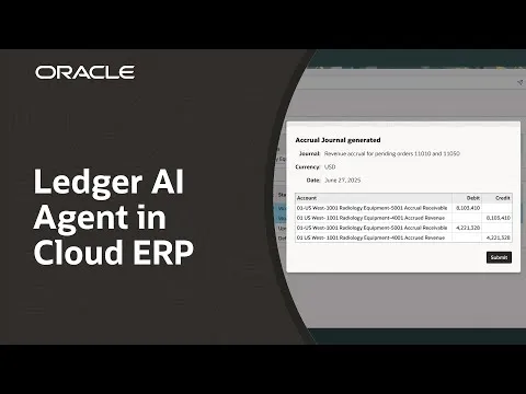 Ledger AI Agent in Oracle Fusion Cloud ERP demo (1:02)