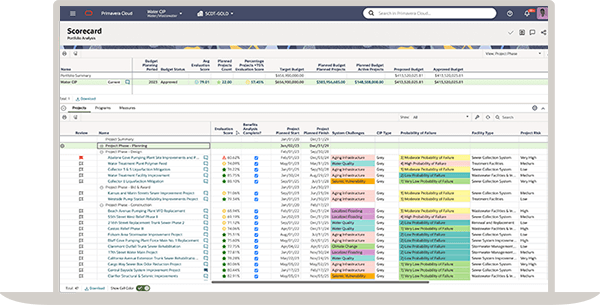 Oracle Primavera Cloud Portfolio Management and Capital Planning es una solución configurable diseñada específicamente para apoyar la gestión de portafolios y la planificación de capital con herramientas integradas de escenarios, optimización y gestión de fondos. La integración nativa con Primavera Unifier proporciona a los planificadores pronósticos y datos reales actualizados del proyecto para informar las decisiones presupuestarias.