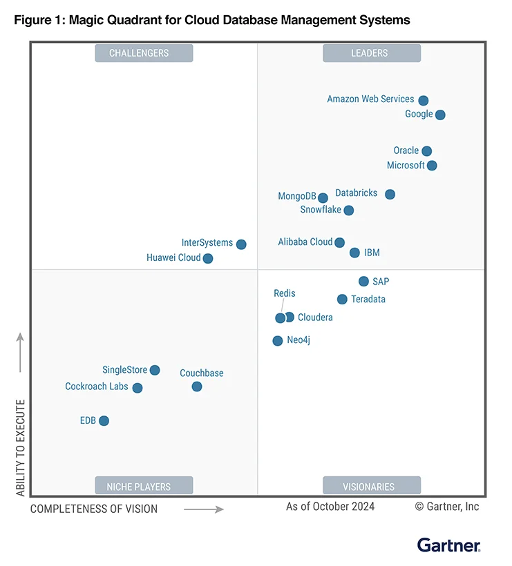 Gartner, Magic Quadrant for Cloud Database Management Systems, 18 de diciembre de 2024. Henry Cook, Ramke Ramakrishnan, Xingyu Gu, Aaron Rosenbaum, Masud Miraz.