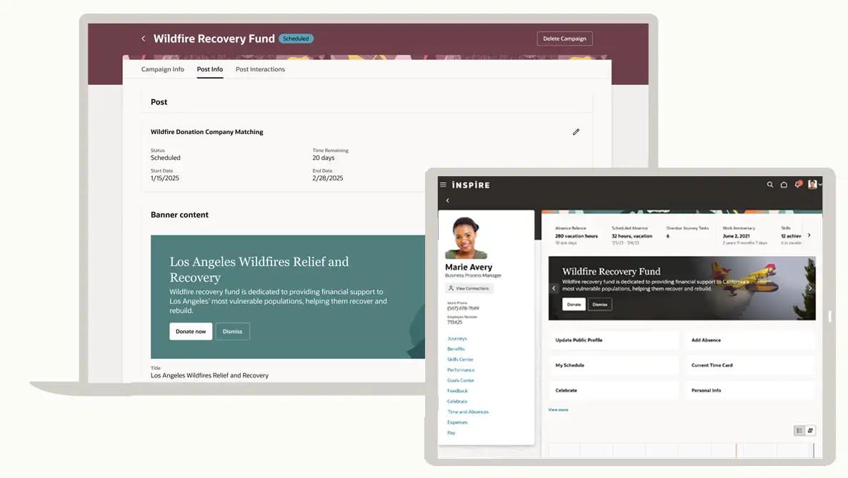 Automatically send employees reminders about priorities on their preferred channels, including posts in their HCM dashboard and Activity Center banners, with a single action rather than posting manually in multiple channels.