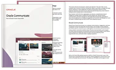 Oracle Communicate, part of the Oracle ME employee experience platform, is an employee communications, engagement, and event management solution that allows HR, business leaders, and managers to drive employee participation, growth, and performance using targeted multichannel communications and internal events while providing employees with a single place to see all event communications and updates.