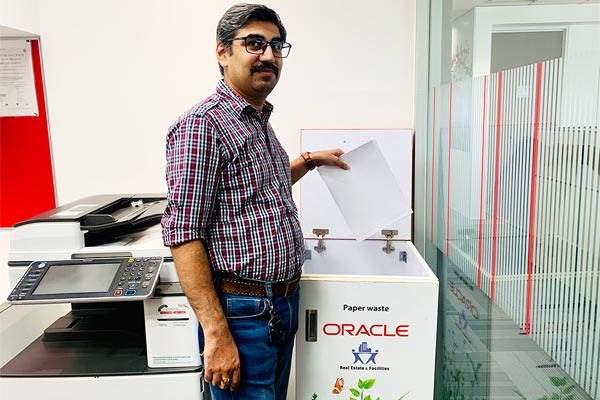 We are always looking for ways to minimize water consumption and waste generation across our operations. By participating in ITC’s Well-being Out of Waste initiative, Oracle recycled more than 10,800 kilograms of paper and wood waste in 2022. Oracle Tech Hub (OTH) in Bengaluru continues to use treated water from a sewage treatment plant for landscaping, toilet flushing, and more. We also installed a rainwater harvesting system at this campus, conserving more than 11.7 million liters of water over the year. Additionally, most of our campuses in India employ composting, e-waste recycling, and other sustainable waster saving and waste management practices.