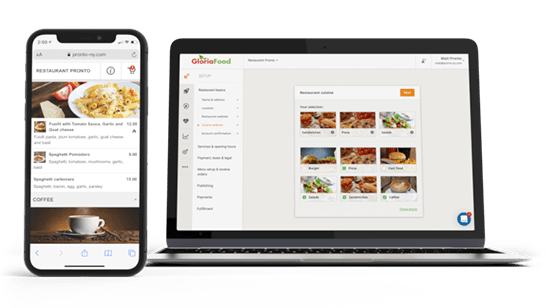 Añada pedidos en línea a su sitio web, aplicación móvil y página de Facebook con unos pocos clics en forma gratuita.