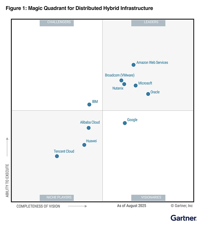 تقرير Magic Quadrant الصادر عن مؤسسة Gartner للبنية التحتية المختلطة الموزعة. جوليا بالمر، جيفري هيويت، دينيس سميث، توني هارفي، إلين تشانغ. 8 سبتمبر 2025.