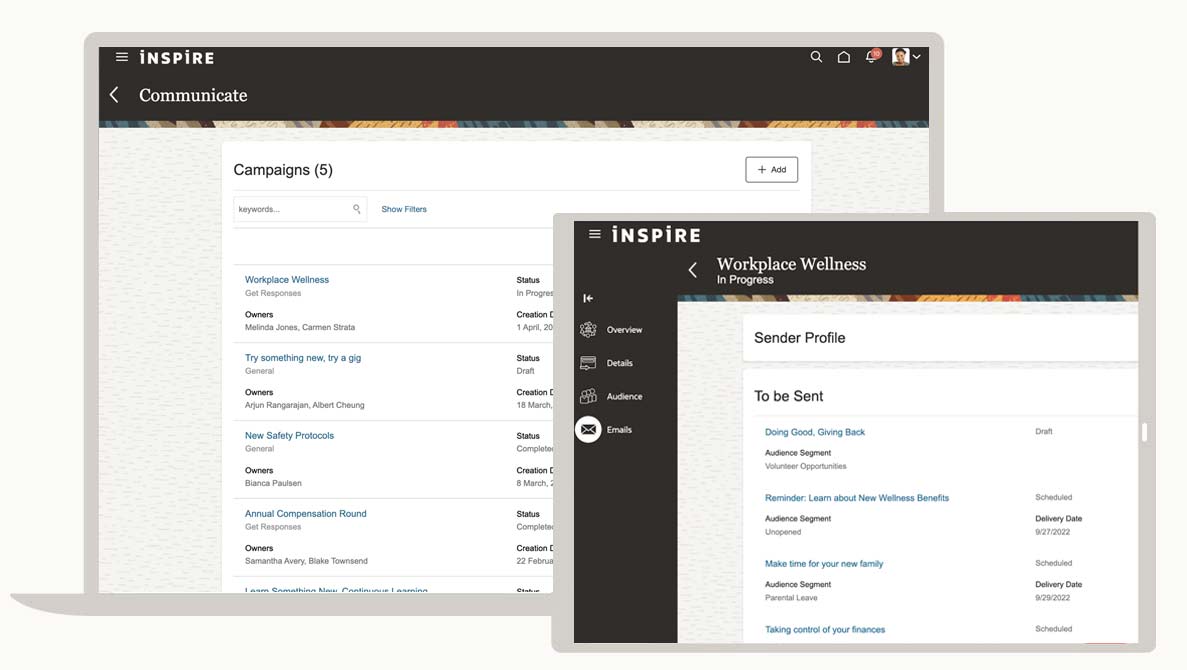 يمكنك تحفيز المبادرات التي تتجاوز تحسين الأداء والرفاهية باستخدام حل يجمع بين الاتصالات وتسويق أحداث الموظفين لمساعدة مؤسستك في إنشاء شعور أقوى بالانتماء والمجتمع وثقافة التعلم.