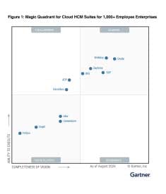 1: تقرير تقرير Magic Quadrant الصادر عن Gartner لمجموعات Cloud HCM للمؤسسات التي تضم أكثر 1000 موظف، تم النشر بتاريخ 24 أكتوبر 2024. المحللون: راناديب شاندرا، كريس بانغ، رون هانسكوم، سام غرينتر، جوزي شينغ، هيتين شيث، ترافيس ويكسبيرغ، هارش كوندولي، أناند شوكي، ديفيد بوبو، لورا غاردينر، إيمي تشيبا، ميشيل شابيرو.