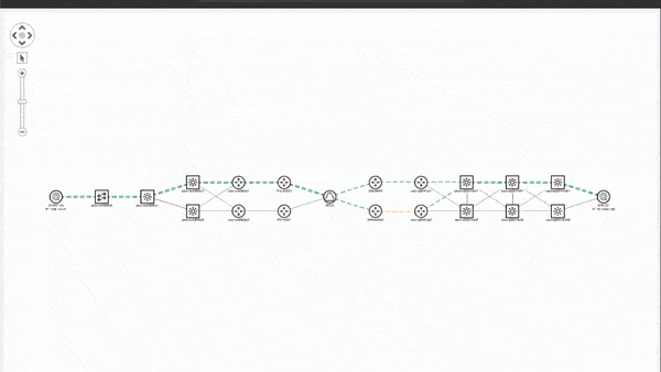 Jako że Assure1 zbiera również informacje dotyczące zarządzania awariami, zarządzania wydajnością i routingu, możemy zaprezentować kompleksowy widok, który pokazuje przepływ ruchu na żywo na podstawie tras BGP. W widokach tych na żółto lub czerwono można określić, gdzie występują problemy z wydajnością na dowolnej ścieżce w sieci.