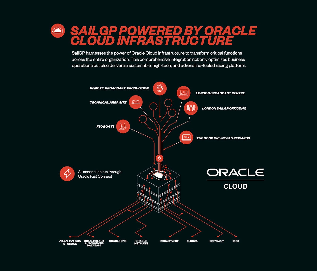 SailGP, sailing’s fastest racing league, relies on Oracle Cloud Infrastructure (OCI) to deliver real-time data to the league’s eight national teams, broadcast partners, and fans worldwide. OCI helps teams optimize performance and give fans a thrilling new experience.