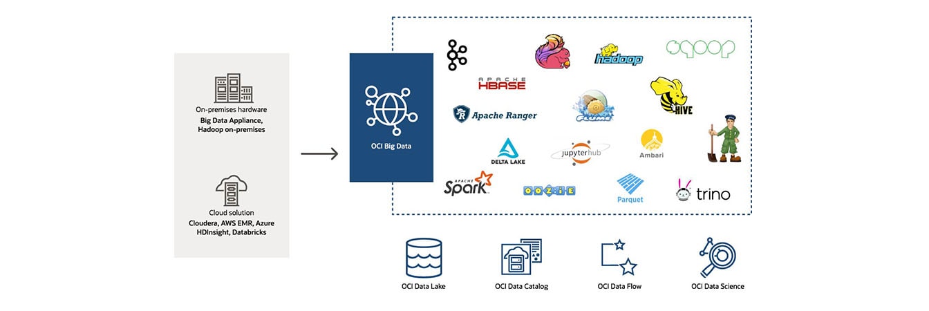 利用 OCI Big Data 服務順暢轉換至雲端。不論您是使用現有的資料湖、Spark、Hadoop、Flink、Hive 或其他 Hadoop 元件,我們的全方位實證方法都支援您輕鬆進行移轉。無需經過大量設定或整合,即可在對您目前環境影響最低的情況下移轉至 OCI。利用 Oracle 專屬工程師與合作夥伴提供的詳細逐步資源和專家指導,確保順暢移轉至雲端。