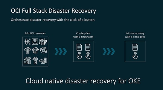 OCI Full Stack Disaster Recovery (DR) 是一項 100% 的雲端原生災害復原即服務 (DRaaS),可將許多不同的復原流程繫結到單一且整合的工作流程中,只要按一下即可觸發。我們的新內建功能可讓您輕鬆將現有的 OKE 叢集新增至 OCI Full Stack DR,以便在 OCI 區域之間進行完全自動化的端對端復原協調。