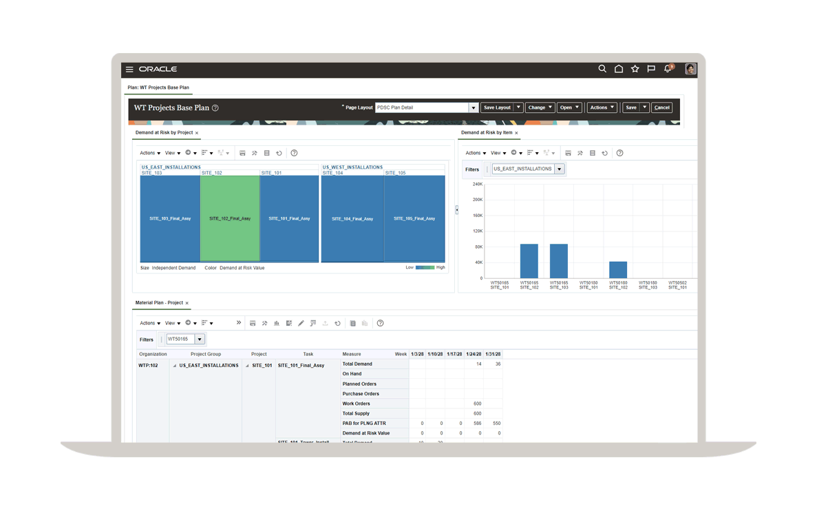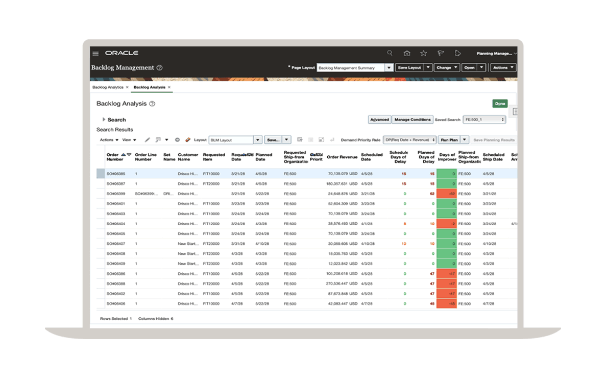 Oracle Supply Planning 的未交訂單管理功能可協助您在物品被分配或供應狀況改變時,優先處理未完成的銷售訂單並重新安排。您可以模擬不同情境,變更採購來源、加速運輸或分拆生產線,以減少交貨延遲的情況、提高銷售或維持利潤。