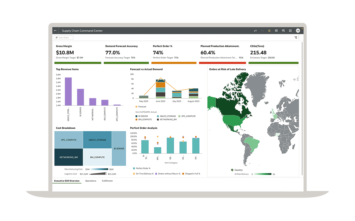 高效的企業制定整合的業務計畫,以協調財務與營運策略。Oracle Sales and Operations Planning 將財務長的收入、利潤和成本目標轉化為對應的全球供應鏈計畫。透過整體規劃功能,您可以識別機會,調整產品組合、採購、製造和配送策略,從而實現盈利和成長目標。