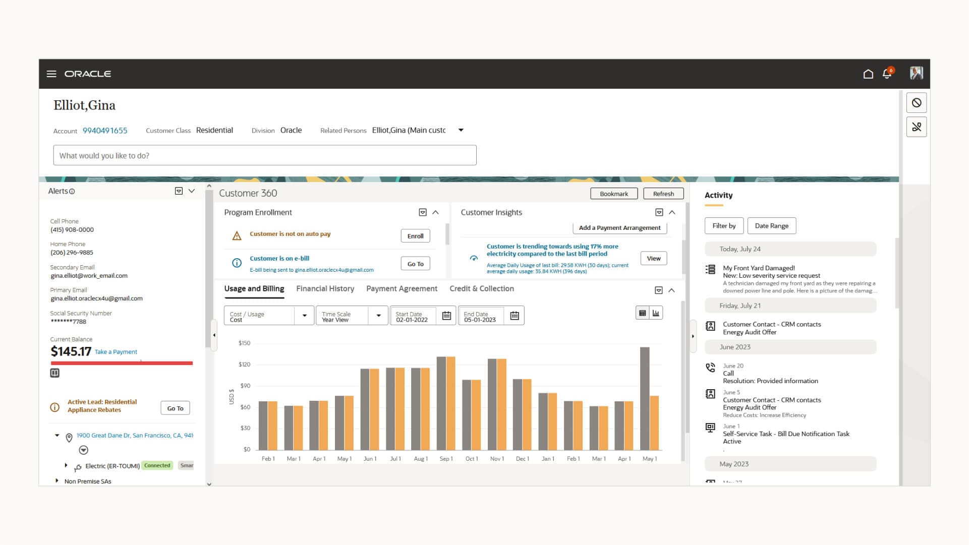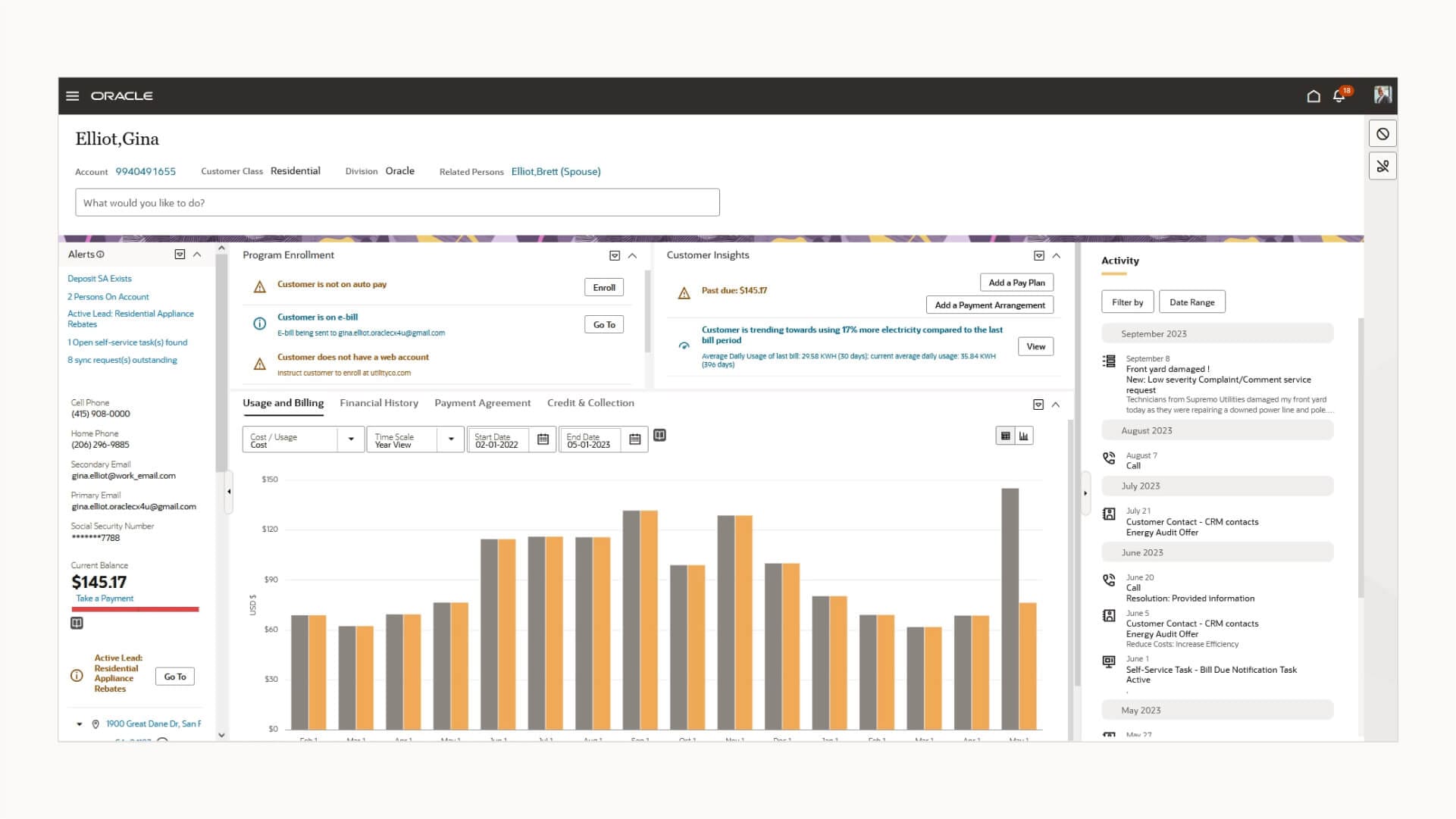 Oracle delivers a complete, connected experience for both your users and your customers. Our application provides support for timely, accurate billing for both traditional and nontraditional products as well as support for smart meters/devices. Our user interfaces have been optimized for ease of use and efficiency to easily address all inquiries.