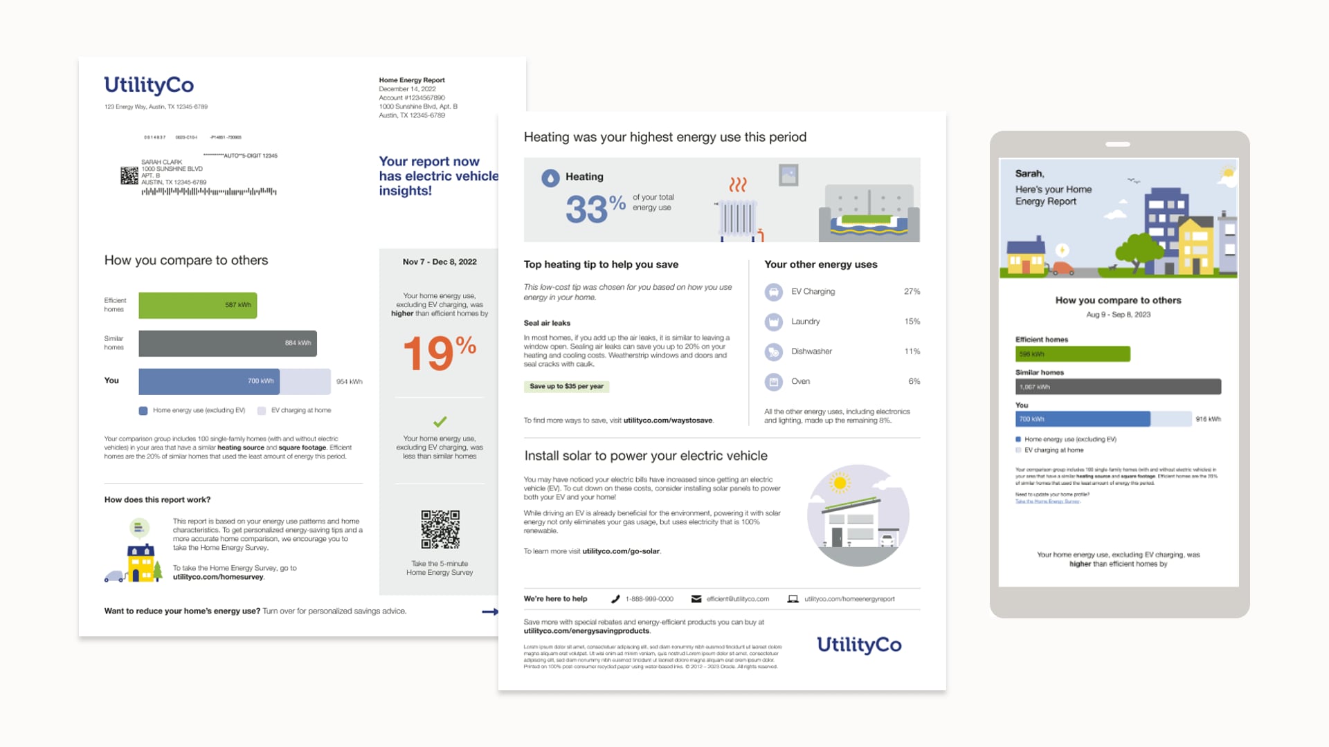 Home Energy Reports contain personalized insights for homeowners and renters, those with and without smart meters, customers with limited incomes or on variable rates, and those with electric vehicles or rooftop solar.